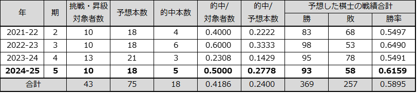 ・過去の予想結果(第2期より)